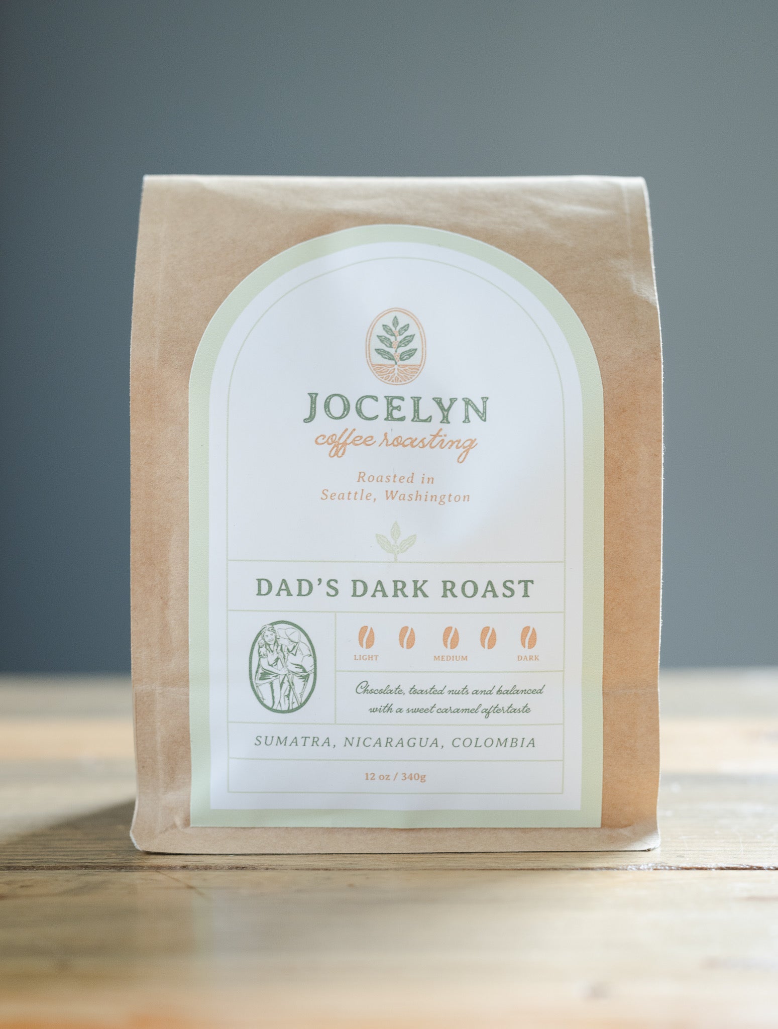 Dad's Dark Roast has notes of chocolate, toasted nuts, and balanced with a sweet caramel aftertaste. Perfect for espresso as well as drip coffee!
